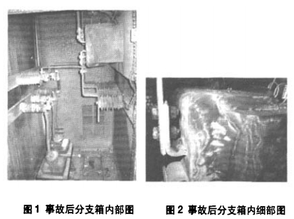 2007年7月18日某地輸配電線路產生跳閘,在巡線至石板坡SMC電纜分支箱時,發現SMC電纜分支箱兩端的開關柜俑壁產生嚴峻變形、601進線開關柜面板有飛弧、放電及炭黑等現象。外觀上,箱體內水跡顯著。儀表柜門已銹死,不得不撬開,操作組織已無法滾動、只能將其解體后打開關柜門。打開#601開關柜電纜室發現:計量TⅣV的熔斷器及支撐絕緣子兩相悉數炸碎、另一相熔斷器產生決裂,支撐絕緣子產生破損,AT外表有爬電痕跡,柜體多處存在放電痕跡,如圖1所示。打開相鄰間隔檢查,狀況相同嚴峻,導電部分受潮嚴峻,銅排及固定鏢栓已長鹵銹,TA外表有多處爬電痕跡,見圖2。該分支箱為某電器廠制作,2003年投運、僅3年多。